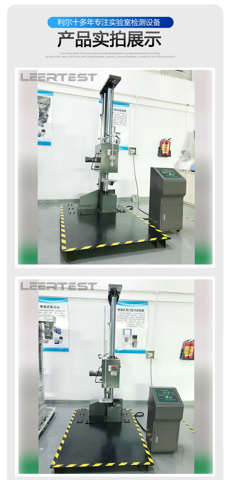 本机采用单柱结构,具有电动复位、电控跌落及电动升降装置,使用方便;跌落高度精准,显示直观,跌落臂升降平稳,跌落角度误差小。