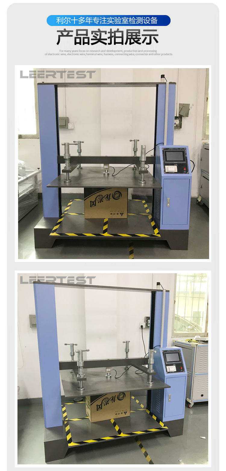 本机设计之初衷为测试包装产品的耐压强度,以防范因包装强度不足导致产品在使用、搬运、堆叠、仓储、运输过程中产品变形、损坏等不良现象发生,是检验纸箱或其它包装容器耐压强度最直接的测试仪器,用于判定纸箱的承物和叠加高度。