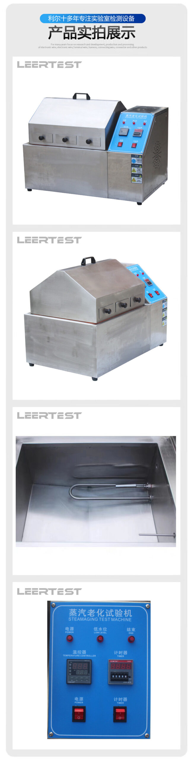 | 控制系统 | PID+SSR控制,数字式显示,时间到达后切断电源;水位过低时自动补充 | |
